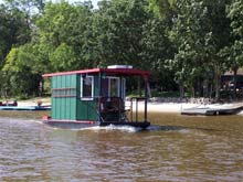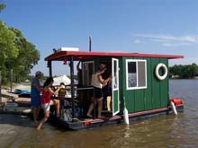 For your consideration for Splash! The "Jus Musin" Shanty based on the Lisa B. Good plans available on Duckworks website. True to plans other than the modification of the front of cabin. Equiped with full controls and 9.9 hp moves along good. Has a Coleman kitchen, and three seat breakfast bar. Captain bench up front. Equiped with navagation lanterns,upper deck and lavatory.