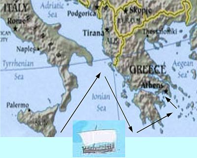 the sea straight to Ithaca, the ancient name for Greece. It would