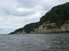 We crossed what is now a fairly wide lake to get to the cliffs