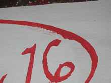 from a stencil. The left side of the “W” is two coats