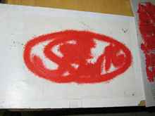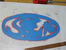 Here is the stencil taped on.