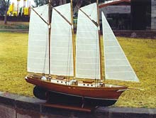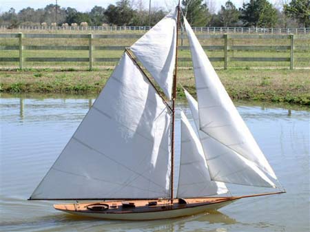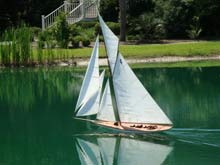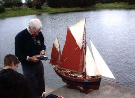 Thomas Sanderson of Hartlepool in North East England built Maryvonne the French fishing yawl featured here. Like many of us (including the writer) he sails with the Darlington & District Model Boat Club on the waters of an 85 X 88 metres reservoir in the village of Middleton, St George. Thomas (I understand from his daughter) is happier building models than actually sailing them. He likes watching other chosen club members sailing his boats and finds operation of RC a bit fiddly.He is currently building a model of the J Class Royal Yacht Britannia built for King Edward V.