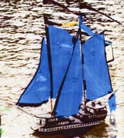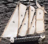 Dennis Desprois hails from the US state of Arizona and is a man of a great many talents and interests. A producer (to order) of replica schooners of which two examples are shown (above), a Seawind Class National race Champion, a maker of own brand (Walrus) for a wide variety of model yacht sails, a manufacturer of his own design Footy boats, a highly skilled photographer and an artist who late last year held a successful one-man show.