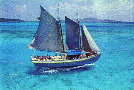 I had an email from Lawrence (Larry) Henry of Indiana, USA remembers building gumwood model sailboats as a young boy in the West Indies and says that my Duckworks columns brings back memories. He was taught to make them by a friend, Clifton Wyllie of Ratho Mill on the island of St Vincent in the Windward Islands when living there in the late 1950’s. Larry who was swimming and boating almost from the time he could walk, made the wee red schooner in the photo above in 1971. He still owns it, whereas the white one which he bought in a shop was damaged in a move from Florida to Indiana. He has a fascination for `work boats’ of all kinds. Don’t know that Larry does much sailing these days.