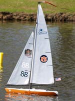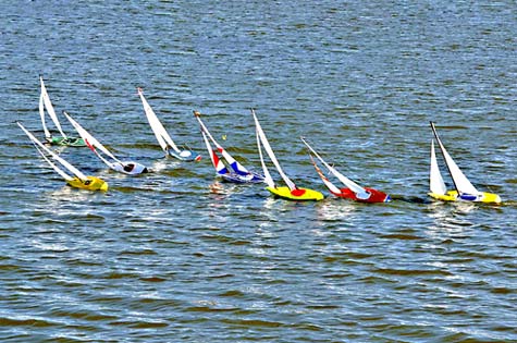 The exciting plus factor is that these boats (in the USA) come at two hundred American dollars all up inclusive of receiver and transmitter radio gear. No wonder they have gained fairly rapid notice and popularity, with fleets currently totaling ten in California, Alabama where there are two in Montgomery, Florida, New York and North Carolina where there are two fleets each also. Designed and engineered by Jon Elmaleh in New York, the design was then sold to Megatech (a US company that builds RC products) who arranged for much of the production to be done in China.