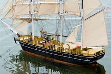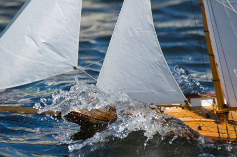 An amateur but very keen and capable photographer, Pat Butterworth was there and a few of his exceptional shots included the absolutely stunning one above of well known schooner model builder Andrew Charters of South Carolina’s, 8 foot long Elizabeth Silsbee. The Starling Burgess design model did several impressive demonstration runs in the waters off the Museum.