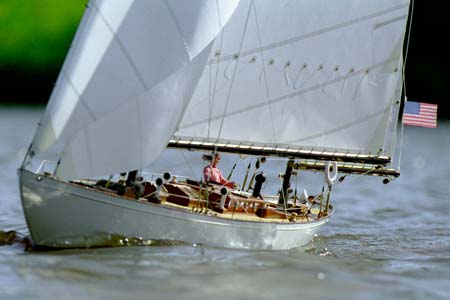 This magnificent model of the Olin Stephens designed yawl Dorade captured in the photograph (above) by Hans Staal was made by Helmut and Gisela Scharbaum of Germany, the shot taken at a Minisail event held in Europe. Dorade was designed in 1929 and won the Transat race from Newport, Rhode Island to Plymouth, Britain in 17 days, 1 hour, 14 minutes in 1931, and the Fastnet race later that year. A year later she won the Newport to Bermuda race and in 1933 again won the Fastnet.