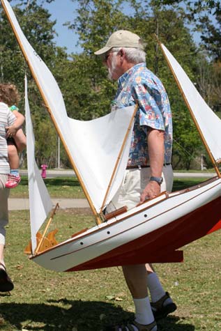 Robert Fisher carrying his beloved model to the water