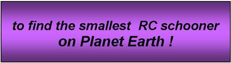 The schooner fan that I am, I got to pondering just how small (length on deck) anyone could build a tiny model schooner, fit micro RC gear and sail it… just how tiny a schooner could it be? And the challenge is now on (with an additional class for a freesail model as well) and almost five months in which to create what would be the smallest RC model schooner on this planet of ours. Entries will close on 15th November with an entry form which I will email to you if you email me requesting it to windlingworld@xtra.co.nz