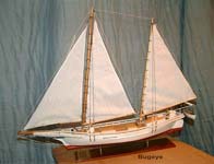 To the writer’s eyes the model of Marybeth is a lovely looker and in one of the photographs shown is seen sailing with the South California Schooner fleet. The dimension of the model is 50” on deck planked in cedar on 1/16th inch plywood frames.