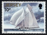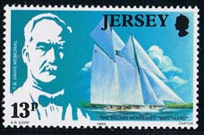 Inspired perhaps by the big schooner models of South Carolina’s Andrew Charters, Kenneth Hall of Iowa in the United States for a long time wanted an RC schooner model and chose to build Westward which was featured on several postage stamps, two of them seen in this item.