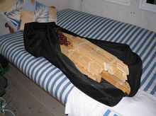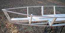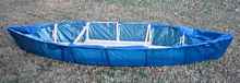 fabric. The sectional boat had a skin fashioned from a blue tarp.
