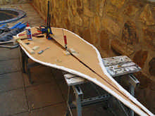 fibreglass cloth and embedding the cloth in glue. This I do to