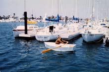 | The sailing rig is the same as the Sabot dinghy with about 38 square feet of sail. All spars and oars stow inside the boat. |