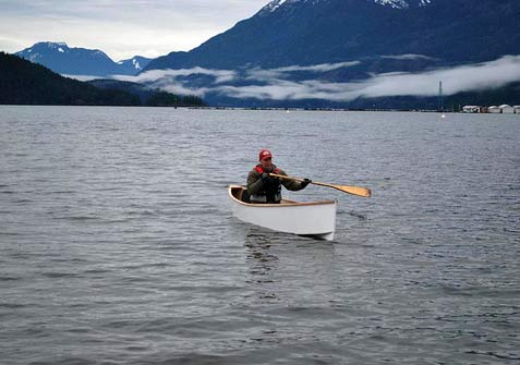 The reason they don't wander is the hulls shape - the shape is very fine in the ends and this creates a FIN at boat ends of the boat that make it track. This picture is of the Rushton Wee Lassie I built of balsa strip (12lbs) about 16 years ago. One sweet boat that. For such a little boat it never gets knocked off course - just great for crossing lakes or paddling against a chop. You can see how the ends sculpt into a fin, placed at either end to give a huge amount of grip.