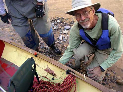 “Back paddle”, says Chuck, and I am learning to do that, but sometimes you just can’t avoid every rock. We concluded that I needed a bulletproof boat. I love the Toto design, but the open center meant that even if I avoided the rocks, it would sometimes swamp in standing waves. We build a couple of Imresboats (long and sleek), and they are perfect for Lake Powell, but not as manuverable in a fast river. We asked Jim Michalak to design a Toto length kayak like the Imresboat, and he sent us the Rio Grande.