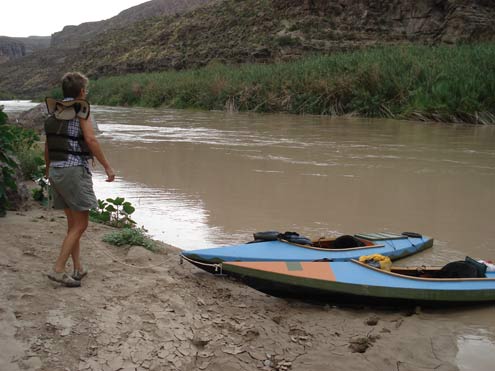 We took them to the real Rio Grande a couple of months ago for a trip down Boquillas Canyon with Louis Aulbach and some other folks from the Houston Canoe Club. The river was high—Mexican authorities were releasing water from dams in anticipation of heavy rain from a Pacific hurricane. As a result, we mostly rode over the tops of any rocks.