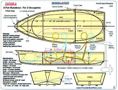 trolling motor for power. It has built-in buoyancy. It has some enclosed space. And, it can be built as a daysailer.