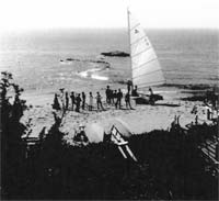 As it tumed out, it was :110-day, approximately 175-mile round trip that we had gone on, and included having bridges open for us at our signals and getting a submarine mad at us due to an error on my part. We really appreciated the boat you desi gned, and it worked great both in the Delta and in the Bay, where the winds varied from calm to really wild (the small craft warnings are up frequently these days) and, despite our loading it down with the anchor (standard equipment for me up here), heavy, inflatable two-man raft, sleeping bags and padding (we usually put a tarp over the boom secured with shock cords to make a tent arrangement at night). groceries (we usually had one meal ashore and one on the boat each day, and restocked during the trip). clothes. fenders. :1 total of 8-l/4 gallons of fuel for the outboard motor, etc.