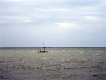 Even though Tuesday dawned with me up and at 'em and making noise, no one started out on the water until about 8 am. The winds had increased overnight, shrieking through the rigging and filling the seas with 'white horses.' We reshuffled the crews, Sean joining Mike and I on the Laguna, Stuart went with Bill and Chuck in a Mikesboat, while Paul found a berth on McDevitt's surprisingly spacious Waverider. David soloed his Mikesboat, Tony was single-handing his beautiful Princess 22, as was Pete in his Nordica 16.
