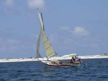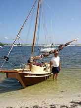Levi sporting a colorful sail, amas made from PVC pipes normally