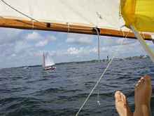 Little Gem in his 21’ SeaPearl to windward. Who says