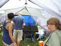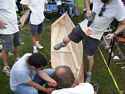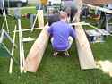 One of the local Civic Clubs has a boat building booth for children.