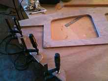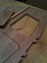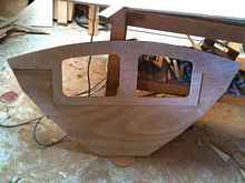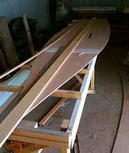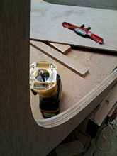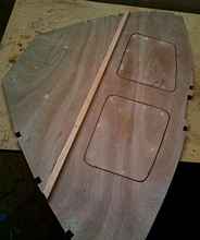 Here the 20mm doubler has been glued (oversize to allow for fairing the hull into the transom) onto the 6mm transom.