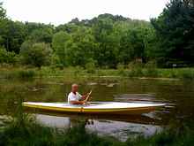 | My turn on the test run on a small pond. Paddle