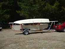 The boat folds easily for trailing.