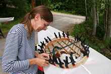We began our two week intensive baidarka-building course by heading down to the beach a few miles away and trying out a variety of baidarkas in a well-protected bay of the Puget Sound. After our salt-water experience with the boats, Corey helped us decide how long and wide our boats were to be and how we wanted to use them. His boats are “tuned” to their owners just as the Aleuts built theirs.