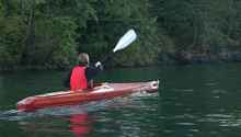 Getting into and out of a baidarka takes a bit more practice than does a modern kayak. For one thing, they can’t be entered while on the beach and slid down to the water as can a modern kayak – despite the relatively tough nature of their urethane coated nylon skin, it’s not impervious to the sandpaper effect of shingle, rock or sand over time. Bairdarkas are best entered the way the Aleuts themselves did it - while afloat in shallow water, carefully keeping sand and beach grit out of the boat.