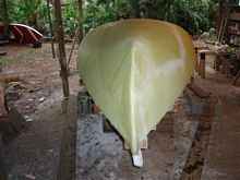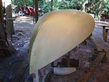 and sand it. Jose and I lifted the glassed hull off of the mold