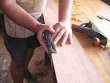 Finally the rabbets are cut on the plank edges. With the planks
