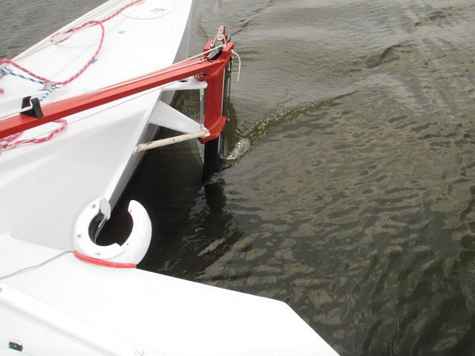 line to switch tack of biaxial sail, lower other rudder. This