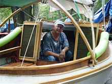 sailed good with just the big gaff sail. He's added a bowsprit