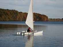 and 18 feet long and 6 feet wide and can be sailed and goes 20