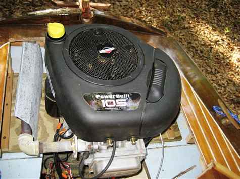 Someone wanted to know how to put a lawn mower engine in a boat. Here you are. It's really easy if you know the secret and have a mechanical genius like Howard to do it.