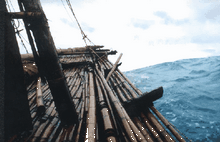 The Nale Tasih 2, a bamboo raft made with stone tools, on its epic 13-day journey from Timor to Australia, December 1998, traveling in 5-m waves.