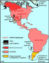 The actual migration pattern may well have been in the opposite direction. Archaeological excavations in Monte Verde, Chile have found stone tools in strata dated at 13,000 BCE while Pikimachay cave findings in Peru have been dated between 12 to 17,000 BCE. Genetic research has shown similarities between natives of Patagonia and Australians. Australia was colonized at least by 40,000 BCE and it would have been possible for early voyagers to island hop across the Pacific to South America. Another possible colonization route is directly from the west coast of Africa to Brazil. The trade winds blow in a western direction in the Tropical Atlantic areas and the Southern Equatorial Current has a speed of about 1 meter/sec., which means that a raft would be pushed around 86 km per day (53 miles) in a westerly direction. Assuming a voyage of around 5,000 km, this would be a 58 day passage. Genetic research into the native Americans has produced some interesting data.