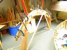 It's now time for our two week holiday in Madeira, I hope you enjoyed the previous article written from there 'Black Scabbard Fish'. The boats they use for fishing were not that much larger than Pepita but must be at least seven or eight times heavier due to the construction being thick wood with iron runners on the keels for dragging up the pebble beach. Back home again and a few more jobs to do to finish off the hull. Cutting and bending the composite gunwales is a good idea at this point, a jig needs to be made for laminating these two items, this avoids distorting the thin plywood as would be the case if they were laminated in situ.