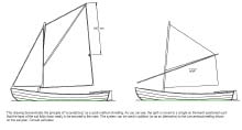 When I was younger, I thought that the correct location of the centre-of-area of the sail-plan in relation to the centre-of-lateral resistance of the hull was something which could not be varied without destroying the balance of the hull. On the day that I cut a hole through the deck of my boat in order to step the free-standing mast for the Junk rig, I sat for ages, terrified that I may have got my calculations wrong. Since then, I’ve experimented a lot, and I have discovered that great liberties can be taken – at least in the case of a shallow-bodied centerboard (or leeboard) boat which has a powerful rudder.