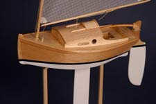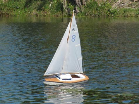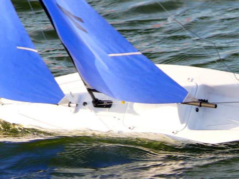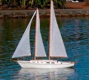 Masts are made from five strips of a fine grain mahogany. Standard rigging is stainless steel and all mast fitting are made from stainless steel also. Sails hauled in by a HiTec winch are of RipStop spinnaker cloth and a HiTec