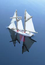 This was a fun`challenge’ principally to set minds thinking, firstly about schooners (a type of sailing boat dear to the hearts of many) and secondly for some to prove that it was indeed possible to `go for the jugular’ and build the smallest ever model schooners that could sail. Harry of Hamilton East in New Zealand who built the little scow certainly did. Well what now? Maybe someone should form the Little Sailing Schooners of Planet Earth Association, keep track of these forerunners and promote the `think small’ Schooner message, perhaps even seek some space on an existing website for reflecting and remembering what turned out to be `possible, and encouraging others!’ Whadja fink? (Good name for a model sailing ship that!)