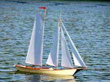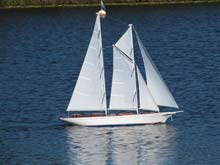 It seems like just day before yesterday (well, a mere handful of years anyway) since Will Lesh of Tippecanoe and I were discussing a schooner model for his range of kit-built sailing yachts, now I see more and more of his T47 schooners appearing in his website of owners photographs. The latest to appear is a nice build by Wayne Hoppe of Wisconsin, USA shown here which for a schooner fan such as the writer is wonderful to see. In my humble opinion the schooner (irrespective of how many masts it carries) is one of the prettiest and most graceful types of sailing boats you will ever find. Schooner models when sailed on ponds are `attention grabbers’ and it is nice to see a little bit of `deck detail’ on Wayne’s schooner in Wisconsin. He has nicely customized it and it is a pity that more people don’t do so with theirs. A flat and un-adorned deck lacks what I call `the realism factor’.