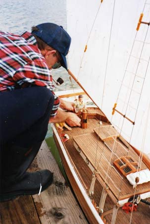 The man above, after illness, sadly departed some years ago for a place more grand, but Rex Cotterell of both Auckland New Zealand’s Ancient Mariners and Scale Marine Modellers is well remembered as the builder of the 2m long model schooner, R Tucker Thompson.