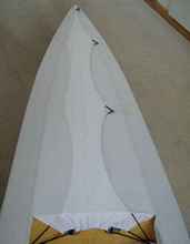 One more interesting part to this story: there has been a recent, pleasant, surprise. Somebody bought a set of plans and instructions--not to build an Alice but to build a boat of his design using my structural approach/construction method. So, just a little more history. When I started naming and numbering Alices was when I finally started using lightweight trusses for the frame. Generally speaking, the greatest stress on a boat that must be provided (designed) for is equivalent to a beam that goes between the bow and the stern. The boat pushes down, and the water pushes up. In the case of a kayak, the main load (force) down is the weight of the paddler right in the middle. Again, generally speaking, the most efficient beam (strength to weight) is some form of truss. I’ll just assume that all the people reading this have at least a vague idea of what a truss is. So the structural aspect of the frame is six laterally curved trusses: the main reason the boat can weigh so little. There are some obvious tradeoffs with this but, again, lightweight was the main design goal. Every designer would like to think that they have done something significant or important with their latest creation. I’m now quite sure that if that is even a little bit true for Alice, it is showing the potential for lightweight boats using laterally joined, discrete, longitudinal trusses for the frame.