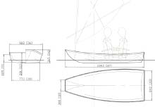I enjoy playing with the forms you can create in a flat sheet of plywood so have tried to build curves into all the elements of this craft to give good shape and strength using a 4mm sheet. I am sure most 4mm Plywood will work to the curves if gently forced to. Attempting not to waste too much of the sheet I have come up with a couple of ideas which may seem different to the usual (odd perhaps?) the first is the curved shape at the bottom of the transom and rear of the bottom panel, it gives a nice curve to the bottom and strengthens up the transom nicely pulling it in two directions and you only lose the saw kerf in cutting. The second is the side panels which when cut you will swap to the oboist side of the hull this allowed me to get a little more curve into the mid to rear part of the boat. At the joint between the main panel and the side panels the angle can make quite a difference to how much the bow will rise. If you want a lot of rocker bevel the sides only a little more. I would suggest that the sides and the main panel are held together with a cleat made form some of the waste ply on the inside and taped and resin bonded on the outside. Fixing the sides to the bottom should be the first thing to do, getting them aliened and to the same shape will make a big difference to the final shape the hull forms. Finally the overlapping cuts at the bow and the curve formed on the pram type front gives the whole thing a bit more beam and a smother shape to enter the water.