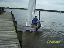 OK, yeah ... with Steve's help I finally got the new rig up and went sailing. Thanks to Norm Wolfe for taking pictures for me ... I have so few of my own boat. |