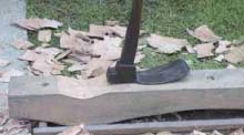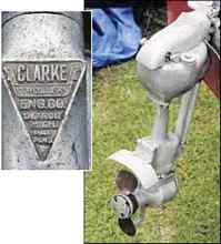 Brett Wilkins' extremely rare old Clarke trolling motor. Piston is at base of shaft under water. Wires at top are for battery attachment for glow plug and motor is started by wrapping cord/rope around propeller front then pulling sharply. pic Jeff Clout |